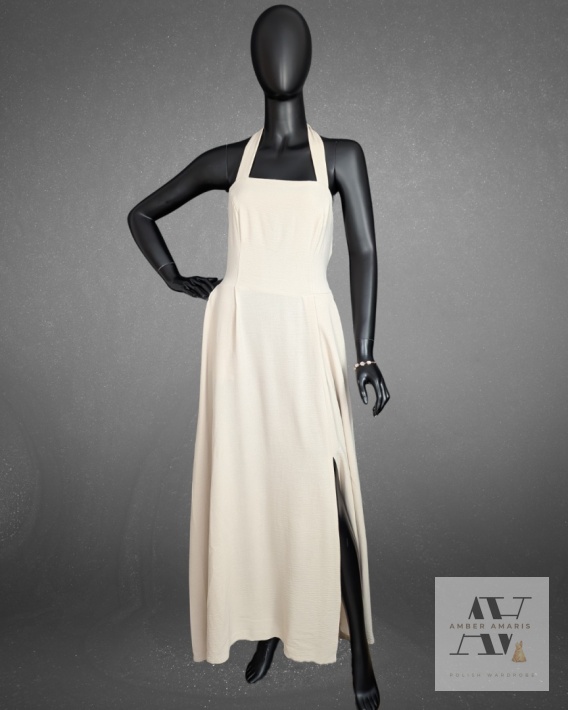 Długa sukienka z odkrytymi plecami, wiązana na szyi. Lekka, zmysłowa i idealna na lato.